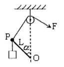 12、如上右图所示,不计重力的轻杆OP能以O点为圆心在竖直平面内自由转动。P端挂一重物,另用一根轻绳通过滑轮系住端,在F的作用下OP和竖直方向的夹角α缓慢增大时(0<α<π),则两绳对杆的作用力的大小( )