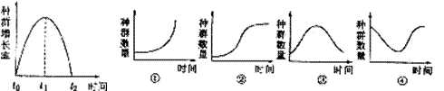 17.某研究所对一条河流生态系统进行了几年的跟踪调查,发现某种鱼进入此生态系统后的种群数量增长速率随时问的变化如右图曲线所示,则在t1时该种群的年龄组成类型以及根据图所反映出的鱼种群数量变化曲线分别是