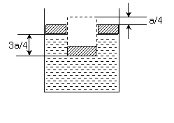 (2) 因容器水面面积为2a2,只是木块底面积的2倍,不可忽略因木块压入水中所引起的水深变化,木块刚好完全没入水中时,右图中原来处于下方划斜线区域的水被排开到上方划斜线区域。这部分水的质量为