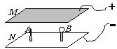 如图是模拟避雷针作用的实验装置,金属板M接高压电源的正极,金属板N接负极.金属板N上有两个等高的金属柱A、B,A为尖头,B为圆头.逐渐升高电压,当电压达到一定数值时,可看到放电现象,则