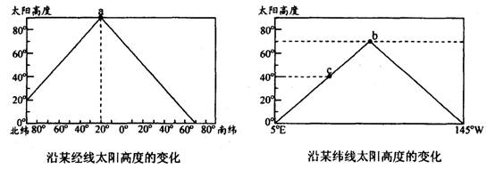 下两图为某日同一时刻太阳高度分布图,读图完成1-2题。
