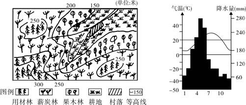 下面两图分别是我国某地区景观图和该地区气候资料图,读图回答7-9题。