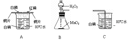 (1)按A装置进行实验,可观察到的现象为①铜片上的红磷 ,②铜片上的白磷 ,③水下的白磷 。