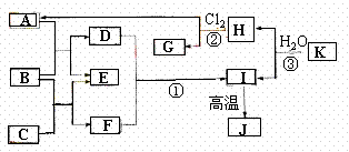 种耐高温材料,K是由两种常见元素组成的化合物(图中部分反应物或生成物没有列出)。