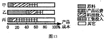 读工业部门产品成本比例示意图(图13),回答27-29题。