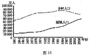 读某国城镇人口和乡村人口的变化图(图14),回答30-31题:
