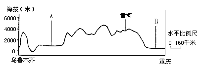 材料三:乌鲁木齐至重庆的地形剖面示意图