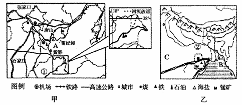 (1)根据甲、乙两区域图简答下列问题(4分)。