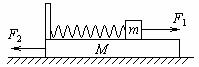 9.如图所示,一轻弹簧左端固定在长木板M的左端,右端与小木块m连接,且m、M及M与地面间接触光滑.开始时,m和M均静止,现同时对m、M施加等大反向的水平恒力F1和F2,两物体开始运动后的整个运动过程中,弹簧的形变量不超过其弹性限度,对于m、M和弹簧组成的系统( )