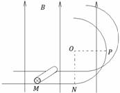 12.(12分)如图,光滑的金属轨道分水平段和圆弧段两部分,O点为圆弧的圆心。两金属轨道间的宽度为0.5m,匀强磁场方向如图,大小为0.5T。质量为0.05kg、长为0.5m的金属细杆置于框架上的M点,当在金属细杆内通以一恒为2A的电流时,金属细杆可以沿杆向右由静止开始运动,已知MN=OP=1m,求金属细杆在P点对每一条轨道的作用力。![]()