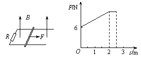 15.(16分)如图(甲)所示,一对平行光滑轨道放置在水平面上,两轨道相距l=1m,两轨道之间用R=3Ω的电阻连接,一质量m=0.5kg、电阻r=1Ω的导体杆与两轨道垂直,静止放在轨道上,轨道的电阻可忽略不计。整个装置处于磁感应强度B=2T的匀强磁场中,磁场方向垂直轨道平面向上,现用水平拉力沿轨道方向拉导体杆,拉力F与导体杆运动的位移s间的关系如图(乙)所示,当拉力达到最大时,导体杆开始做匀速运动,当位移s=2.5m时撤去拉力,导体杆又滑行了一段距离s' 后停下,在滑行s' 的过程中电阻R上产生的焦耳热为12J。求: