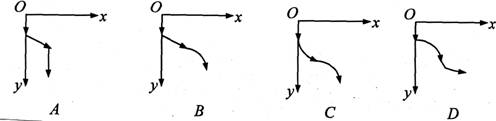 1.一物体由静止开始自由下落,一小段时间后突然受一恒定水平向右的风力的影响,但着地前一段时间风突然停止,则其运动的轨迹可能是图中的哪一个? ( )