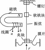 振弦型频率传感器的结构如图所示,它由钢弦和永磁铁两部分组成,钢弦上端用固定夹块夹紧,下端的夹块与一膜片相连接,当弦上的张力越大时,弦的固有频率越大.这种装置可以从线圈输出电压的频率确定膜片处压力的变化.下列说法正确的
