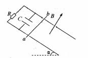 14.如图所示,两条平行的足够长的光滑金属导轨与水平面成α=37o角,导轨间距离L=0.6 m,其上端接一电容和一固定电阻,电容C=100μF,固定电阻R=4.5Ω。导体棒ab与导轨垂直且水平,其质量m=3×10-2 kg,电阻r=0.5Ω。整个装置处于垂直导轨平面向上的匀强磁场中,已知磁感应强度B=0.5T,取g=10 m/s2,sin37º=0.6,cos37º=0.8。现将ab棒由静止释放,当它下滑的速度达到恒定时,求: