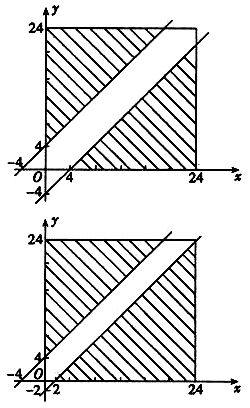 (1)设甲、乙两船到达时间分别为x、y,则O≤x<24,0≤y<24且y-x>4或y-x<-4