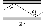 3.如图2所示,是两个城市间的光缆中的一条光导纤维的一段,光缆总长为L,它的玻璃芯的折射率为n1,外层材料的折射率为n2。若光在空气中的传播速度近似为c,则对于光由它的一端射入经多次全反射后从另一端射出的过程中,下列判断中正确的是 ( )