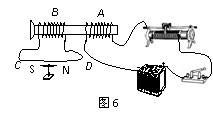 9.在一个较长的铁钉上,用漆包线绕上两个线圈A、B,将线圈B的两端接在一起,并把CD段直漆包线南北方向放置在静止的小磁针的上方,如图6所示。下列判断正确的是 ( )