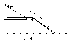 ②按照如图14所示的那样,安装好实验装置。将斜槽AB固定在桌边,使槽的末端点的切线水平,将一斜面BC连接在斜槽末端。