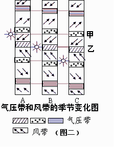 71.当我国各地白昼时间最短时,下列四幅图所示气压带、风带分布正确的是( )