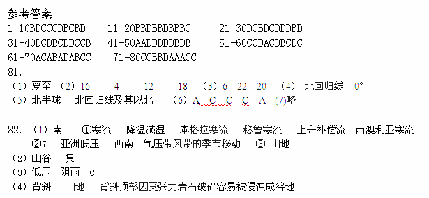 81. 读右图回答问题:(两侧的虚线为极圈,斜线表示黑夜,各条经线是等分的)(共20分)