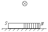 如图所示,条形磁铁放在水平粗糙桌面上,它的正中间上方固定一根长直导线,导线中通过方向垂直纸面向里(即与条形磁铁垂直)的电流,和原来没有电流通过时相比较,磁铁受到的支持力N和摩擦力f将