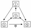 若此图表示岩石圈物质循环,甲代表变质作用,则能表示岩浆岩和沉积岩的序号是