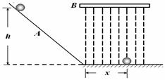 11.(8分)如图是某一研究学习小组进行实验探究的一个实验装置,A是倾角一定的光滑斜面,B为板上垂悬着条形布帘的阻挡装置。当小球自斜面上某处由静止开始下滑且抵达水平面时,就立即遇到条形布帘的阻挡,它经过一定的位移x后停止运动。现进行如下操作并获得表一、表二的相关数据。(假设小球到达斜面底端与水平面碰撞时无能量损失)