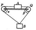 12.(12分)如图所示,PQ是固定的水平导轨,两端有定滑轮,物体A和B用细绳相连。系统处于静止状态时,α=370,β=530。若物体B重5N,求物体A所受的摩擦力。(已知sin370=0.6,cos370=0.8)