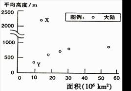 下图是各大陆的面积与平均海拔高度关系示意图,据此回答13~14题。