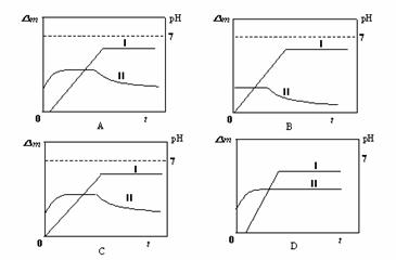 13.某同学用镀铜的石墨做阳极、石墨做阴极电解稀硫酸溶液,用曲线Ⅰ表示电解过程中阴极增加的质量(△m)随时间(t)的变化关系,用曲线Ⅱ表示溶液pH随时间(t)的变化关系。下列曲线图合理的是(电解初期溶液中H+放电)