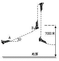 (14分)国家航天局组织对航天员进行失重训练,训练客机总重5×104kg。航天员乘坐上民航客机后,先使客机以200m/s速度沿300倾角匀速爬升到7000米高空后飞机立即向上拉起,沿竖直方向以200m/s 的初速度向上作匀减速直线运动,加速度大小为g,当飞机到最高点后立即掉头向下,仍沿竖直方向以加速度g做匀加速运动。为了安全,飞机离地2000米高之前必须拉起客机,之后又可一次次重复这个过程。若飞机飞行时所受的空气阻力f=kv(k=900N·s/m),每次飞机速度达到350m/s之后必须终止这次失重训练。(整个运动空间重力加速度恒为10m/s2)。