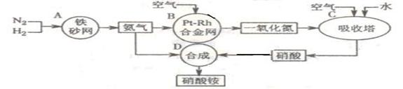 27.(15分)硝酸铵在国民经济中占有重要的地位,下图是工业生产硝酸铵的流程,请回答下列问题: