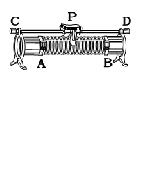 滑动变阻器的使用:它有四个接头,实际上只有三个有用,如图C、D是同一点,它是靠改变电阻丝的长度来达到改变电阻大小的,在电路中起限制电流安全保护和调节电压与电流的作用,它常用有两种接法,分别叫分压法和限流法(下面有详细介绍)。所谓限流法是指上接一个(C、D当中接一个),下接一个(A、B当中接一个)。而分压法是三个接头都要用的,下面两个接头连电源,上面取一个接头和用电器相连再与下面一个接头相连。使用滑动变阻器之前,要弄清楚它的最大电阻值和允许通过的最大电流值.使用时任何一部位都不得超过允许通过的最大电流值另外还要正确连入电路.滑动变阻器的选择,既要考虑它的额定电流,又要考虑它的阻值范围,在二者都能满足实验要求的情况下,还要考虑阻值大小对实验操作中是否调节方便的影响。注意不要接成固定电阻(把电路两端分别接到A、B)或接成短路(把电路两端分别接到C、D),也要防止损伤电阻丝表面的绝缘层,以免造成匝间短路