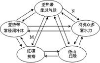 读我国某区域自然环境各要素的关系示意图,分析回答1-2题。