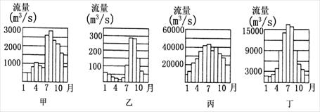 8. 下面四图中,能正确反映上图中河流①处月平均流量分配的是( )