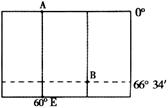 图中相邻两条经线的经度差为30度,A.B为晨昏线上的两点,太阳直射在东半球。据此完成10-11题。