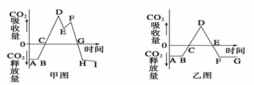 A.甲图中有机物积累最多的是G点,两图中B点植物干重均低于A点时的干重