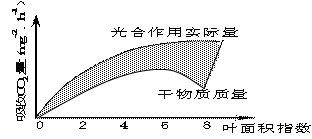 25.下图表示叶面积指数与光合作用和呼吸作用的关系(叶面积指数是指单位面积上植物叶面积数量。此值越大表示植物叶片交错程度越大)。图中阴影部分表示的生理过程和森林合理开采的叶面积指数分别为( )