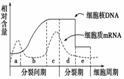 下图表示洋葱根尖细胞有丝分裂各阶段细胞核中DNA和细胞质中信使RNA含量变化。下列有关说法正确的是( )
