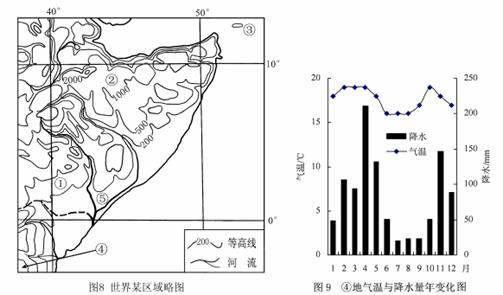 (4)分析⑤地发展农业生产的自然条件。(6分)
