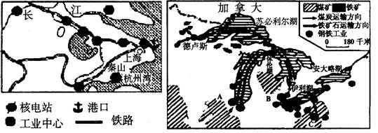31.读中国沪宁杭工业区与美国五大湖工业区示意图,回答。(10分)