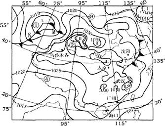 32.读中国及周边地区2007年12月20日0时海平面等压线分布图,完成下列要求。(10