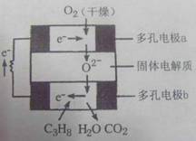 某固体燃料电池以固体氧化铝--氧化钇为电解质,这种固体电解质在高温下允许氧离子(O2-)在其间通过。该电池的工作原理如图所示,其中多孔电极a、b均不参与电极反应。下列判断不正确的是