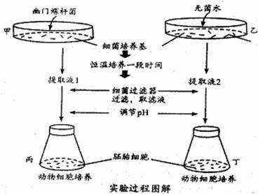 实验器材:细菌培养基、HCl、NaOH、动物细胞培养液、胚胎细胞、培养瓶、无菌水、恒温箱等。