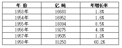31.有同学从50年代的报刊资料上查找到了一些有关中国粮食增长的数据,并归纳整理为下列表格,从中我们可以得出的正确结论是
