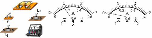 ②在这个实验中,小明先后使用电流表的“0-0.6A”和“0-3A”两个量程,表盘指针情况如图所示。为了使测量更准确,应使用的量程是 ,灯泡L2中的电流是 A。
