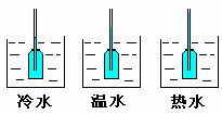 A.用三根内径粗细相同的玻璃管和三个完全相同的玻璃瓶、塞子和红墨水制成三个一样的液体温度计,使它们的玻璃管中液柱的长度相同,将它们同时分别放到冷水、温水和热水中,结果如图所示。B.用三个完全相同的瓶子、三根粗细不同的玻璃管、塞子和红墨水制成三个温度计,让玻璃管中的液面高度相同,将它们同时放到同样的热水中,结果如下表所示: