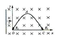 合金属导轨,O、C处分别接有短电阻丝(图中粗线所示),R1= 4Ω、R2=8Ω(导轨其它部分电阻不计)。导轨OAC的形状满足方程