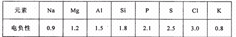 (5)电负性(用X表示)也是元素的一种重要性质,下表给出8种元素的电负性数值:
