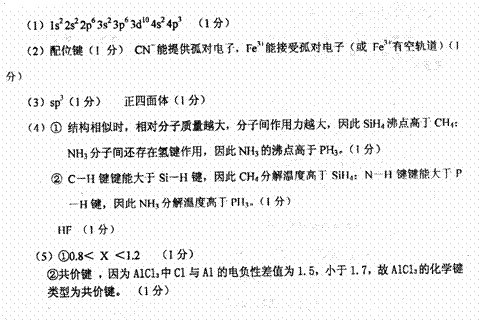 1.(1)②(1分)(2)三角锥(1分) 分子晶体(1 分)